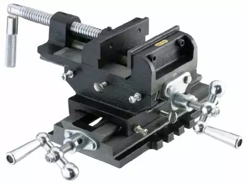 This vise features an exclusive slide bar to prevent jaws from tilting up or sideways when tightening. Adjustable gibs take up any slack on both top and bottom slides. Use this vise on your drill press for cutting keyways and doing light milling jobs.