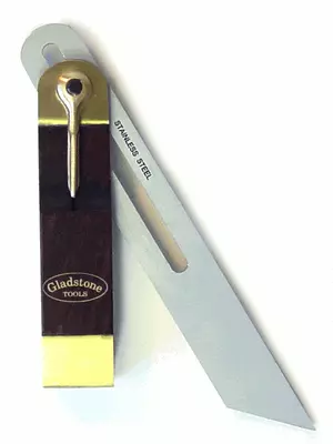 Made from solid brass, select rosewood and stainless steel, these sliding bevels are equipped with a brass lever for one hand operation. The blade is rust proof stainless steel with a dull chrome finish.