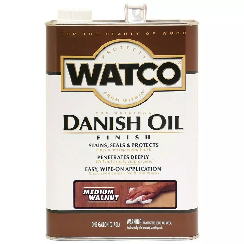 WATCO Danish Oil is a unique blend of penetrating oil & varnish hardens in the wood, not on the wood. Watco Danish Oil penetrates deep into wood pores to protect from within and to enhance the natural look and feel of the wood. It creates the rich, warm glow of a traditional hand-rubbed finish. Many projects can be completed in less than an hour – simply brush or wipe on and wipe off. Watco Danish Oil is the choice of fine woodworkers and novices alike. Please read product labels for additional directions and precautions before using