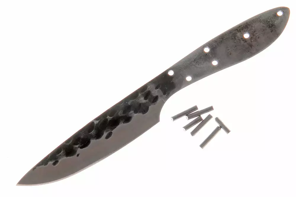Great for the serious small game hunter or as a high end finished knife. Made from 9cr14MoV stainless. The hammered finish provides a rustic look. Includes 6 pins.