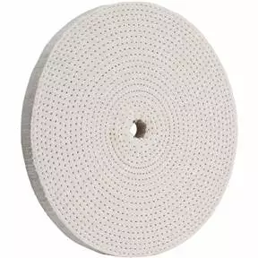 These wheels are excellent for making the final cut when polishing plastics and most metals (excluding delicate metals such as gold and silver). Can be used with any compound. For final finishing on brass, stainless steel, aluminum, bronze and cast iron. Each layer is 100% unbleached cotton sheeting, spiral sewn approximately 1/8″ apart. 8″ diameter x 40 ply x 5/8″ hole.