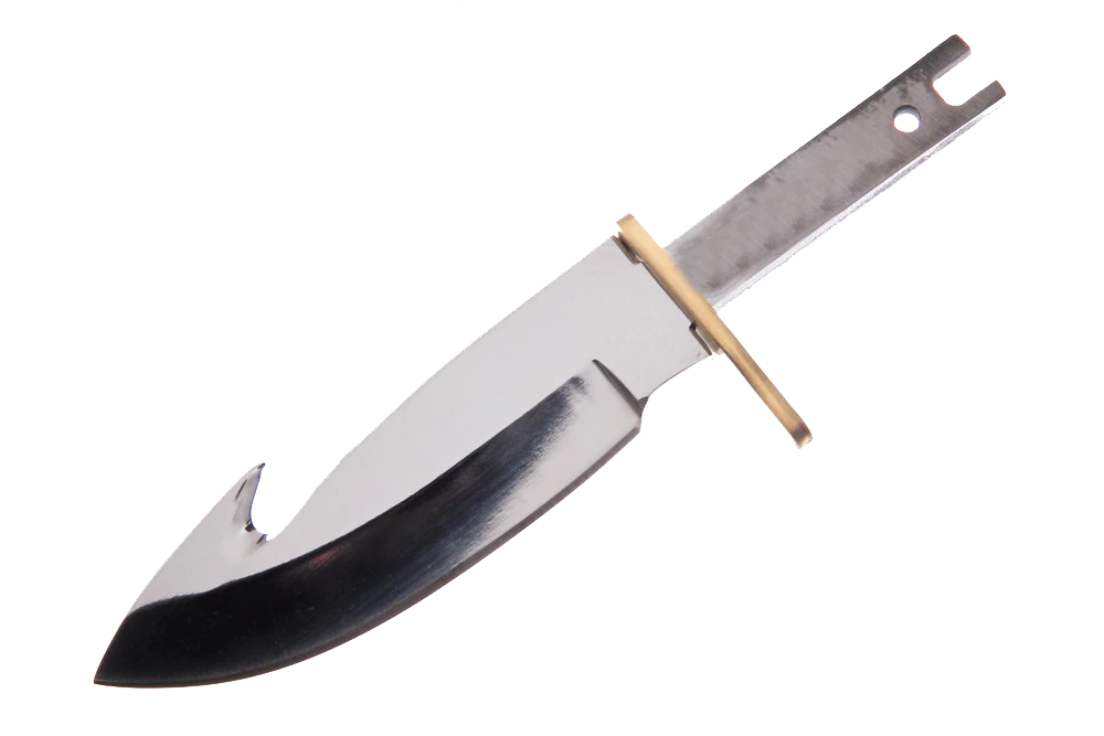 Great design mirror polished skinner. This blank is made of 7cr17MoV stainless steel, slotted fitted guard included and heavy construction. Sharpened blade and polished mirror finish. Great care was taken for the guard it is slotted so the blade can go inside the guard for tighter fit. Greater care is also given to the anchor hole you can use two different sizes of rod. Excellent blade. Drill, epoxy, shape and polish a real easy knife to start with. These were designed for our customers that want a great resell knife. Fit and finish is up to the maker.