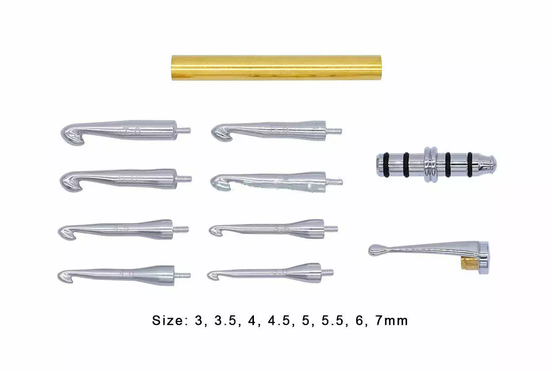 Chrome crochet hook kit sets. It is an ideal useful gift for Mom, Kids, Girls, College Students, Beginner etc. Crochet hook kit sets includes 8 different aluminum oxide hooks, there is a chromatic difference because of the different material with other metal parts, kindly take note. Size: 3, 3.5, 4, 4.5, 5, 5.5, 6, 7mm. Each hook with sizes marked for easy identification