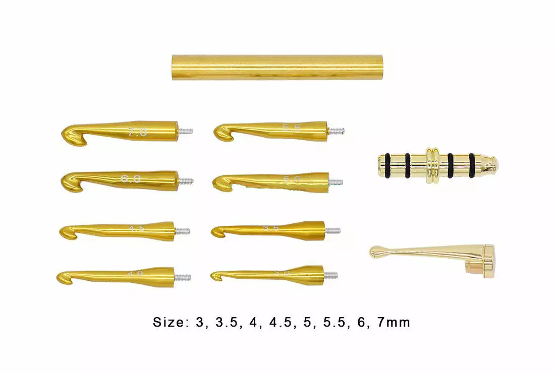 Chrome crochet hook kit sets. It is an ideal useful gift for Mom, Kids, Girls, College Students, Beginner etc. Crochet hook kit sets includes 8 different aluminum oxide hooks, there is a chromatic difference because of the different material with other metal parts, kindly take note. Size: 3, 3.5, 4, 4.5, 5, 5.5, 6, 7mm. Each hook with sizes marked for easy identification