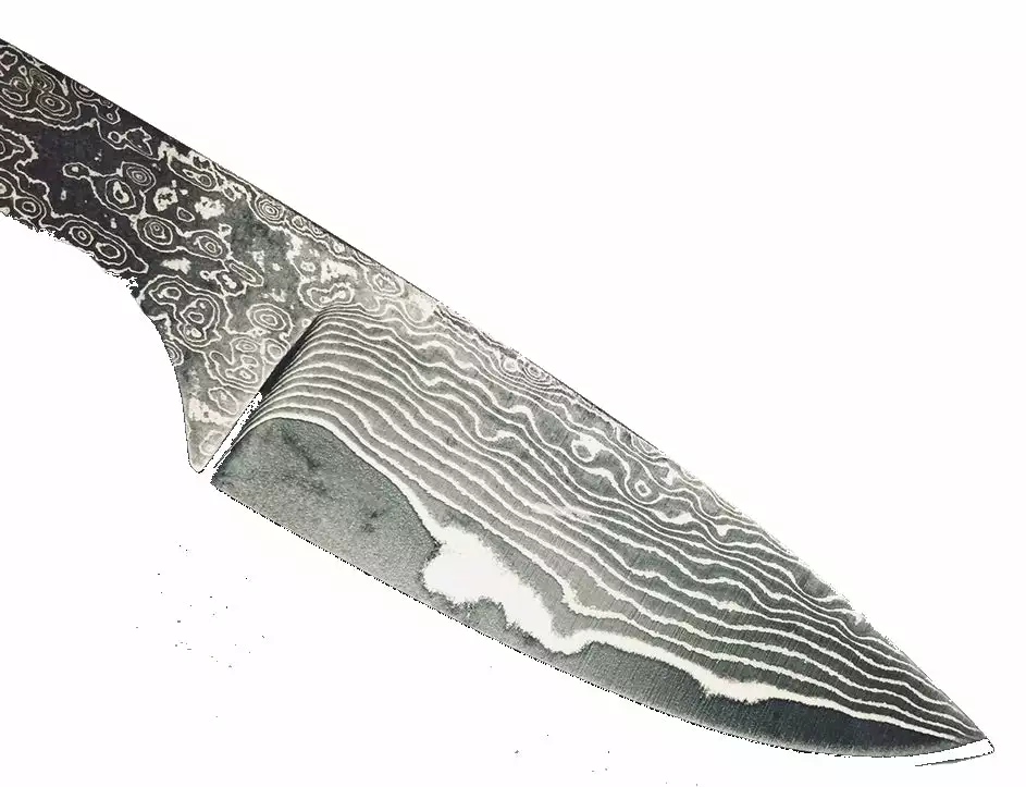 Subtle but elegant, this high precision quality San Mai style Damascus Mini Caper has folded NICKEL Damascus with 72 layers are laminated to a core of 8cr14MoV steel. Core has an RC of 56-58. It comes already sharpened and polished to a satin finish.