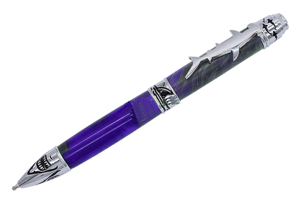 Gold & Black deep sea fishing pen kits. The pen tip is shark’s mouth and the center with the shark’s fin above the water line. The shape of shark’s head on the pen clip, the circling sharks on the pen cap. An Awesome deep sea fishing pen! We believe that most people will love this pen!