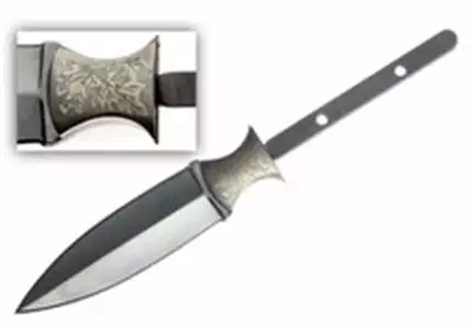 Our latest S Series, this double edged blade is called the “Doc Holiday”. Laser etched bolsters and mirror polished blade made from 7cr17MoV stainless steel. Blade is sharpened on one side only, other is false edge that may be sharpened.