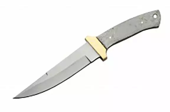 This blank has a modern twist on a traditional pattered Bowie knife. Slimmer blade makes this one heavy duty yet functional knife. Weather used for hunting or self defense it is sure to never let you down. The neo-classical design along with brass guard are sure to make this knife a stand out that will catch everyones eye.