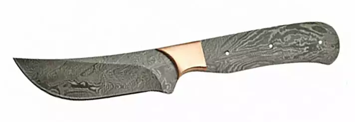This 8.75″ Damascus blank will make a super skinning knife or kitchen knife. The Full Tang, Copper Bolster and the thickness of this blank make it as strong as it is sharp looking. This currently is the only knife blank that sports a Copper Bolster.