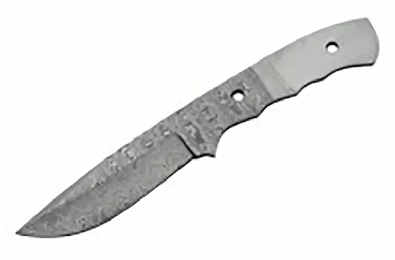 These blanks are full length Damascus (Not the cheap etched blades that many people are passing off as genuine Damascus blades. These blades have a high carbon core then over 250 layers of folded carbon steel with a high nickle content on top. These blanks will sharpen and hold an edge like mad. We recommend washing and drying after use and then placing a couple of drops of oil to prevent rusting (Food Safe Oil recommended). The Nickle makes for a high contrast between layers. You can bring out the contrast in areas that were not dipped (Gray areas – end of handle) with a mild acid mixture or by leaving it  sit in a coke for 3-4 hours. Be sure to neutralize the acid, clean and oil before using. Do not try this until you read more about etching process on the front page of www.woodworldtx.com under Etching Damascus in the menu on the left of the page.