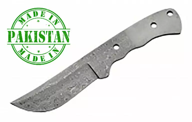 These blanks are full length Damascus (Not the cheap etched blades that many people are passing off as genuine Damascus blades. These blades have a high carbon core then over 250 layers of folded carbon steel with a high nickle content on top. These blanks will sharpen and hold an edge like mad. We recommend washing and drying after use and then placing a couple of drops of oil to prevent rusting (Food Safe Oil recommended). The Nickle makes for a high contrast between layers. You can bring out the contrast in areas that were not dipped (Gray areas – end of handle) with a mild acid mixture or by leaving it  sit in a coke for 3-4 hours. Be sure to neutralize the acid, clean and oil before using. Do not try this until you read more about etching process on the front page of www.woodworldtx.com under Etching Damascus in the menu on the left of the page.