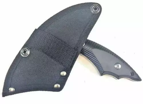 These are sold as “kits” including the sheath, aluminum handles and sex screws already assembled. What makes this fun is that a knife maker can easily replace stock handles with custom personalized handles. Made from 4cr13MoV stainless with as stone wash finish.
