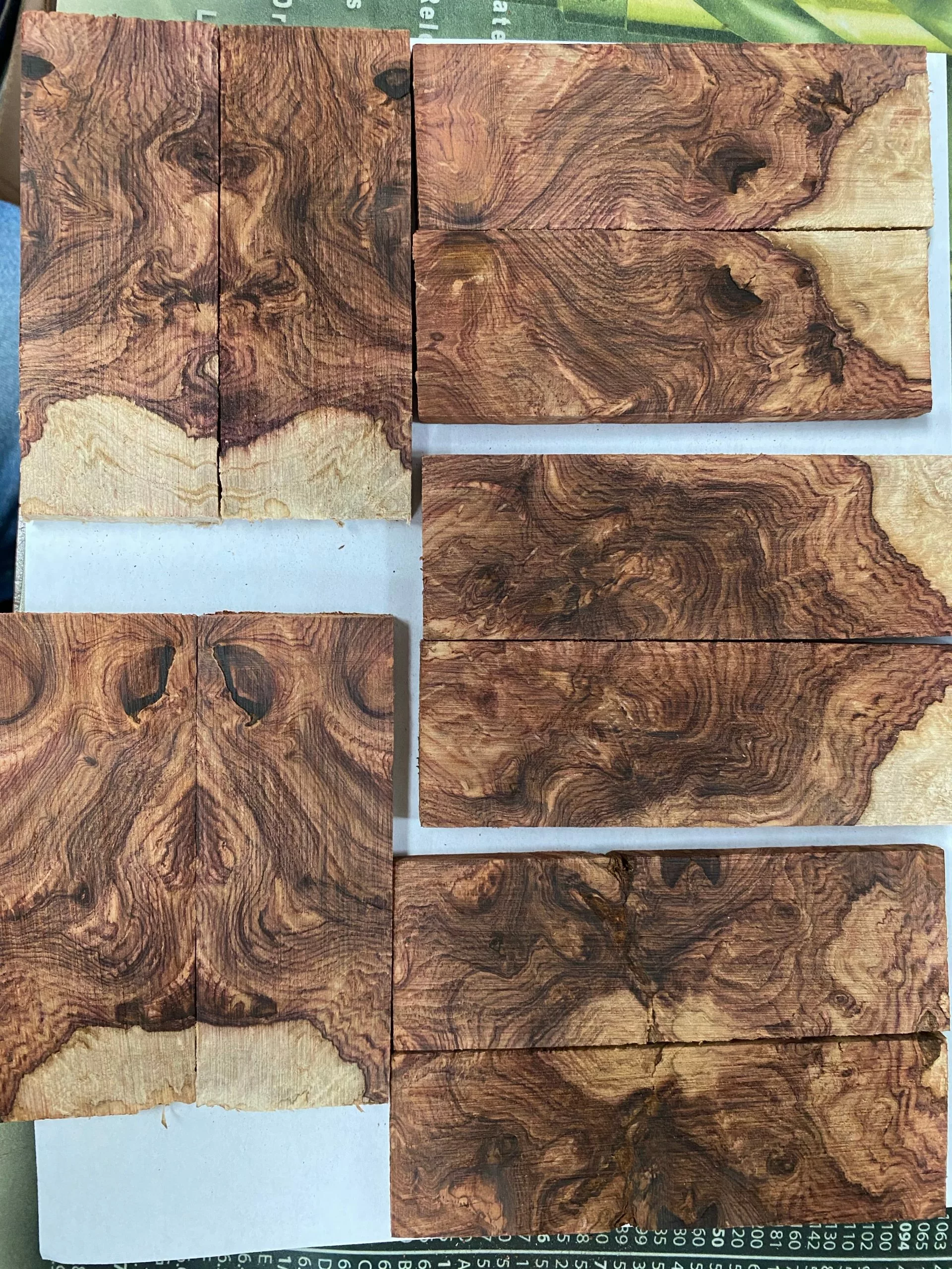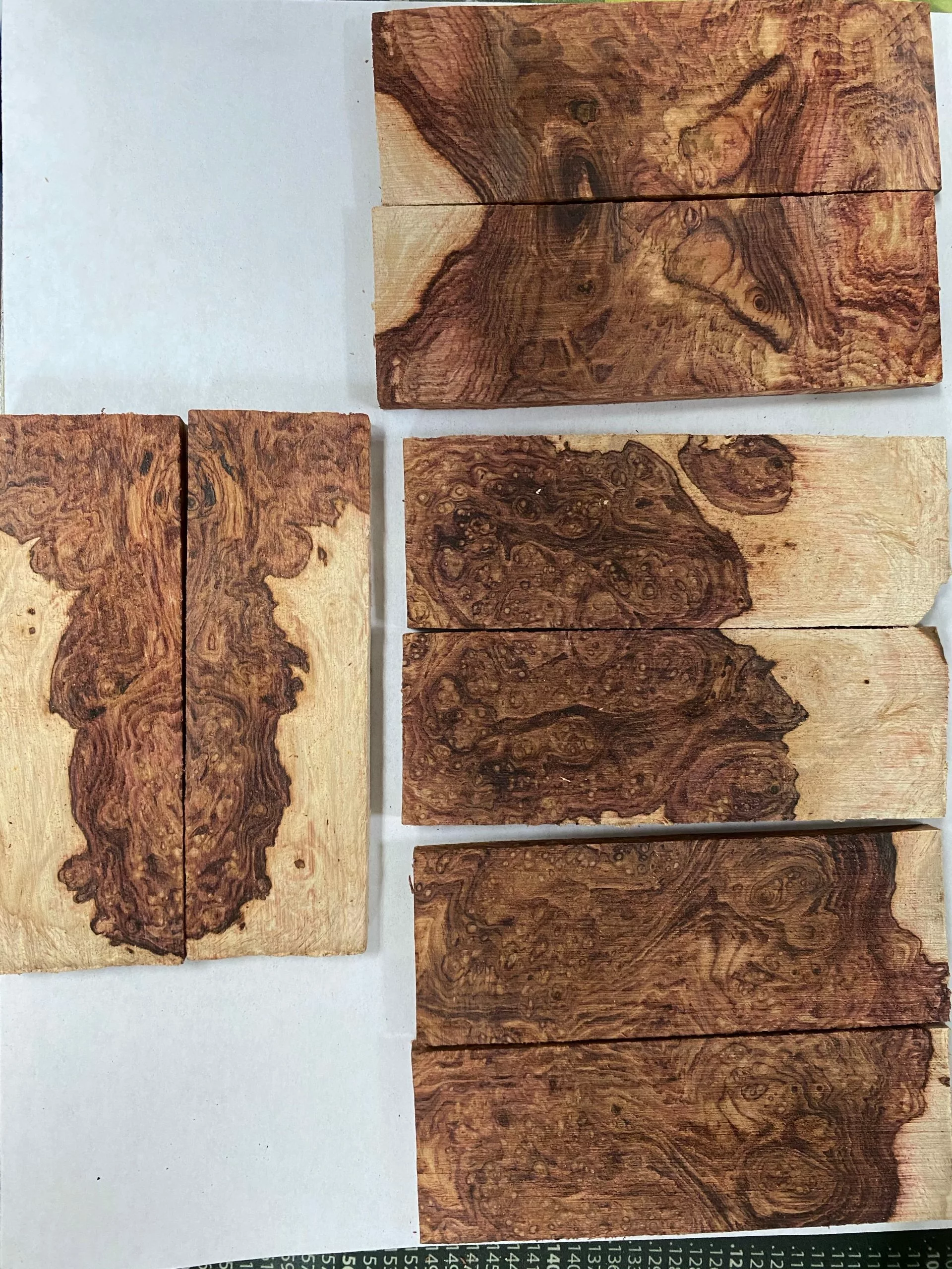 Honduran Rosewood burl knife scales-bookmatched measuring 5.5†x 2†x 5/16