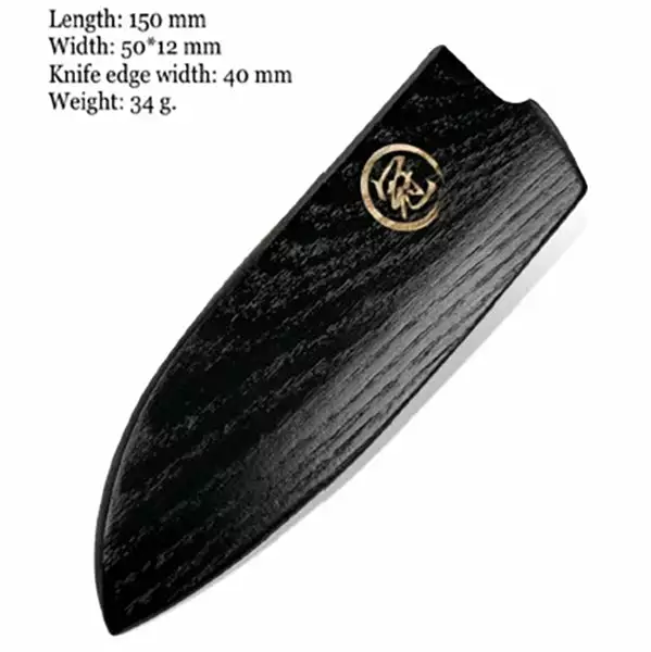 This is a carbonized bamboo edge guard with internal magnets to help keep it in place. This one is designed to work with Santoku Knives. Edge Guards are great if you store your knives in a drawer or if you use a roll and want extra protection for the roll. Overall Length is 5 7/8″ and Width is 2.00″.