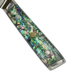 **Awabi Complete Kitchen Knife 4 Pc Set – With Abalone In Resin Handles And Mosaic Pin – AUS-10 Damascus Steel