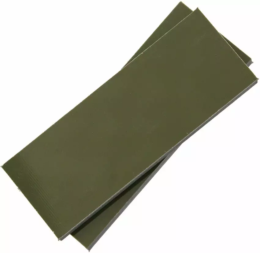 Dimensions: 4″ x 1.5″ x .25″. OD Green G10. Contains two slabs. Item shown has been ground to show layers.ÂÂ