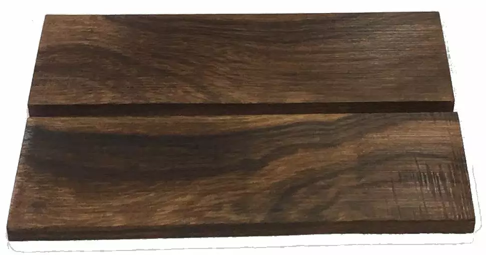 Desert Ironwoods heartwood ranges from an orangish yellow to a darker red or brown, with darker violet to black streaks. Some pieces may be almost entirely black. Narrow yellow sapwood is clearly demarcated from heartwood. Due to the small size of the tree, the grain can be wild or gnarled in apperaence. It has a fine even texture and excellent natural luster. This is a very dense wood.