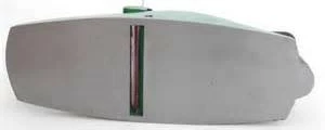 This scraper plane has handles and a large sole like a bench plane which makes it easy to work large surfaces. The 70mm (2 3/4″) wide scraper blade may be adjusted from 90 to 65 degrees for optimal scraping. Body of fine grey cast iron with green epoxy paint, knobs are composite material, steel and brass fittings. 210mm (8 1/4″) long.