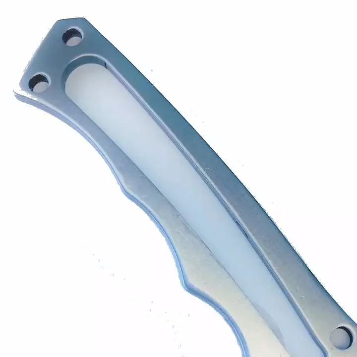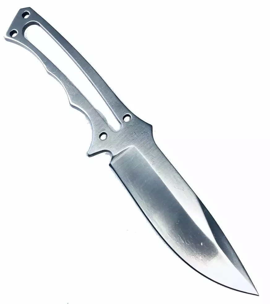 This is an important knife for the knife maker, tactical user and survivalist alike. It is a ultra light weight drop point that weighs in at 2 ounces. Made of D2 tool steel with a satin finish. This acid dip process leaves a very effective neutral color and corrosion resistant finish. It has both an upper thumb stop and lower finger protection. Includes a screw system for handles or can be wrapped in Para Cord. Already hardened and sharp!