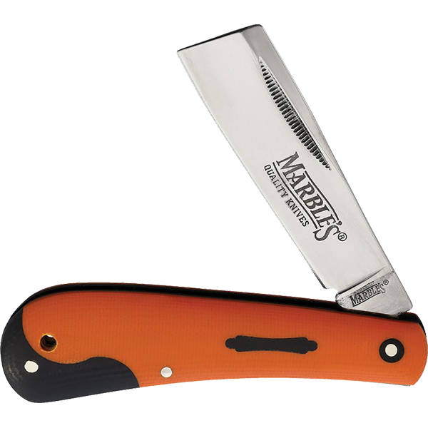 4″ (10.16cm) closed. Mirror finish stainless Hawkbill blade. Black and orange G10 handle.