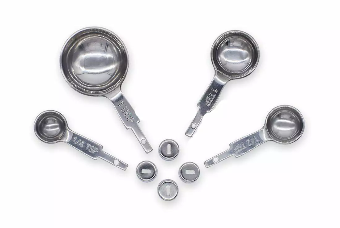 Stainless steel measuring spoon kits with the flat handle. A must-have kitchen essential that will make the perfect gift. 4pcs/set. Including 1/4TSP, 1/2TSP, 1TSP, 1TBSP.