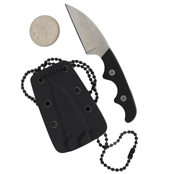 These mini neckers are mini … 3 15/16 inches overall, 1 5/8 inch blade, but they are awesome for a hidden knife around the neck. These blades come on their own, or in a kit (great option for that little knife making helper that wants to be involved). We also have handle material made from g10 and a neck sheath available for purchase individually if you want to do your own thing. I think it would be awesome with a stabilized burl handle, and it’s small enough that you can use scrap wood from a different project to complete it.