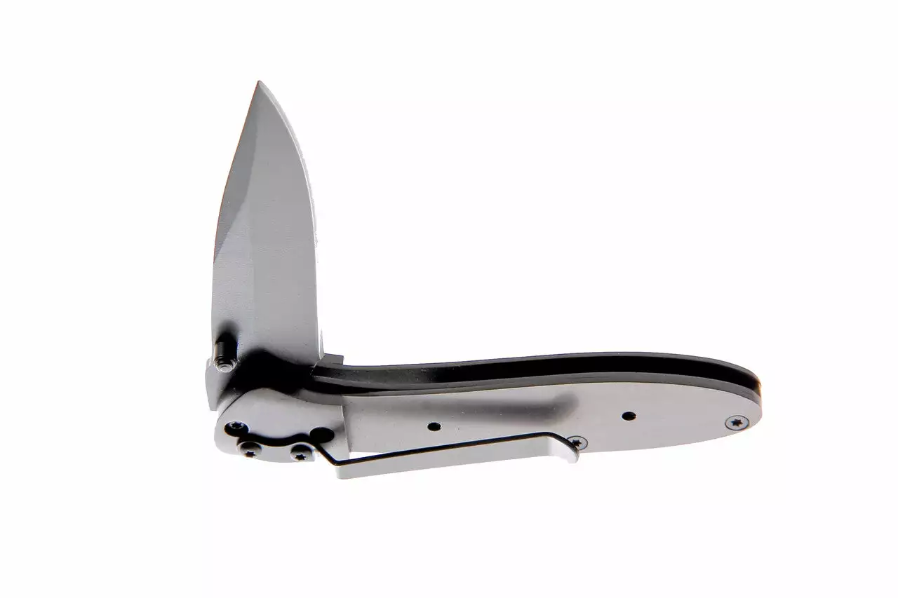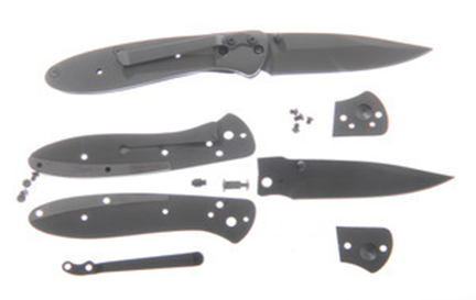 This is one of the nicest most elegant liner lock folder designs we have made and incorporates some desired hidden features for the knife finisher and enthusiasts. This version is assembled. Additional pictures show what it looks like assembled. First the most obvious feature is the overall color. This is Titanium coated inside and out and all the hardware. The non reflective quality added to the extreme corrosion resistance on a high quality 9CR14 stainless gives this folder an impressive pedigree. The bolsters can be easily removed to adjust the tension on the blade with a star wrench. It has a dual thumb stud for ambidextrous opening. Removable pocket clip as well. Sharp and ready for handles to be added. The blade design is a drop point with a false upper edge. It comes sharpened. Easy to assemble kit just add handles. You will need a small star wrench set.