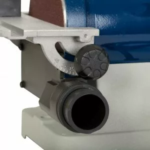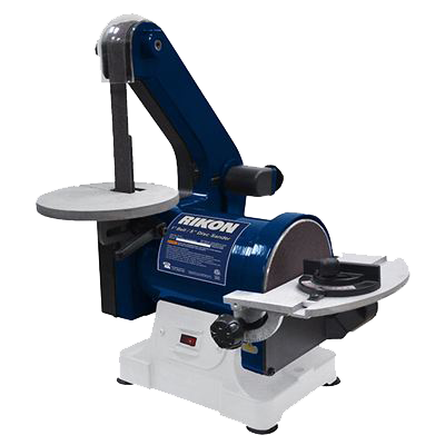 This combination Belt & Disc sander has a powerful 110V, 1/3HP motor which spins the 5″ disc speed of 3450 RPM and the belt at 3340 sq.ft. per minute for fast stock removal. This nice unit features a solid cast iron base with rubber feet to keep it from moving around on your bench. Both the belt and disc tables tilt from 0 to 45 degrees which adds a lot of versatility to this machine. It even has two 1-1/2″ dust ports for easy dust extraction. This unit works great for many applications but is especially handy when attaching knife scales to any knife kit.