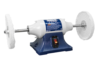 The Rikon model 81-608 Slow Speed Long Shaft Buffer features a smooth starting, powerful ½ HP motor. It runs at 1,750 RPM, which is ideal for buffing wood, plastics and various metals. This buffer comes with two 1/2″ x 8″  wheels with a 5/8″ arbor hole. The cast-iron base features anti-vibration rubber feet and it has mounting holes for easy attachment to a workbench or grinder stand. Buffer comes with 6′ Power Cord And Five-Year Warranty.