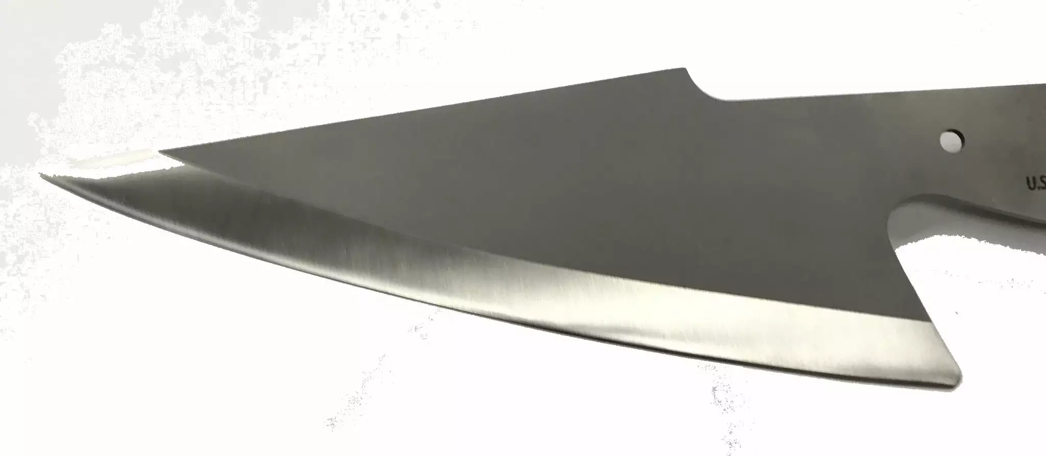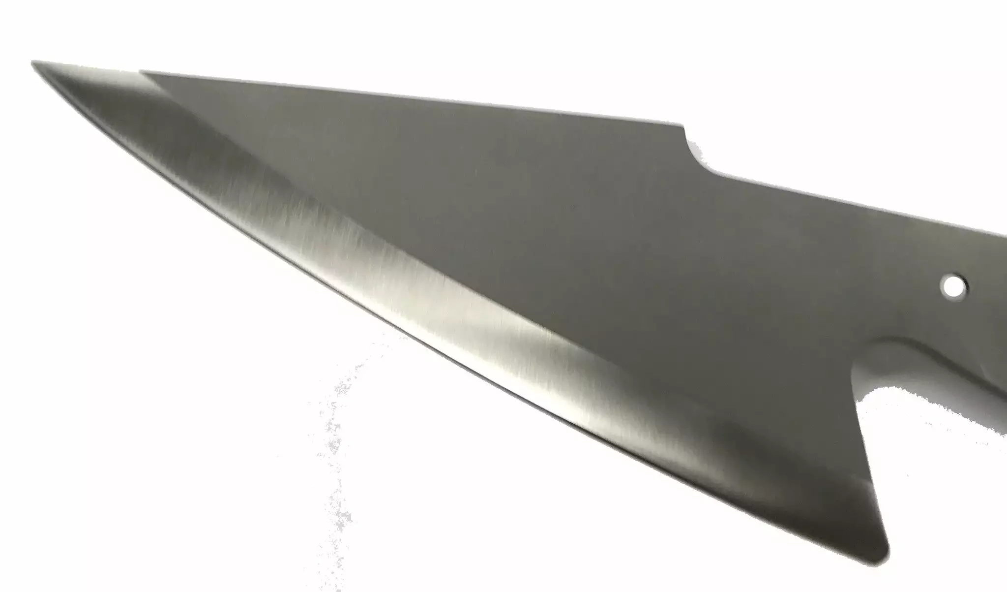 This is one super chef knife. We loved it so much we harassed the manufacture until they would sell us just the blank. We also had the manufacture bead blast the upper portion of the blade and polish the lower section to give this knife a sophisticated and stylish look that is sure to stand out in your kitchen. This knife has 3 – 3/16 pin holes and in every other way is exactly the same as the finished Ugly Knife.