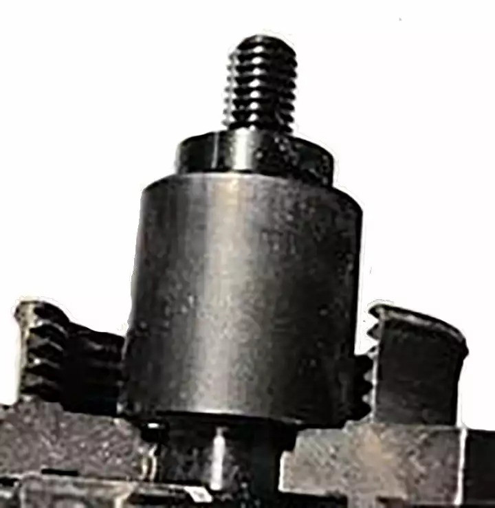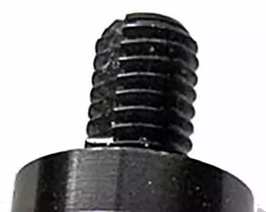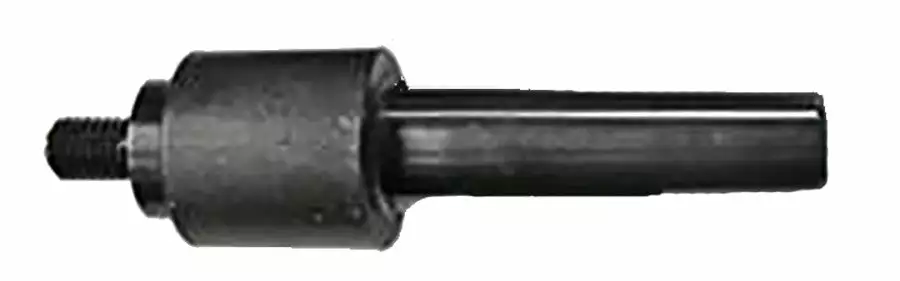 #2MT-B  3/8″ x 16 tpi screw with a “slit” in the threads so it is self tapping (**see bottom picture on left). The Morse taper end is threaded for a 1/4″ x 20 tpi drawbar. ** the section between the Morse taper and the section that is the same diameter as the stoppers is 1 1/8″ diameter creating a “shoulder” to seat flat in a jaw chuck (**as in center 2 photos on the left). This mandrel has the same #2 Morse taper, the same 3/8″ x 16 tpi threads and the same 1/4″ x 20 tpi threaded back end for a draw bar.  This is for turners who do not want to take their chuck off the lathe so often.