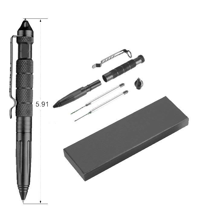 SOCOM Tactical Pen With Glass Breaker And Self Defense Tip – Black Aluminum