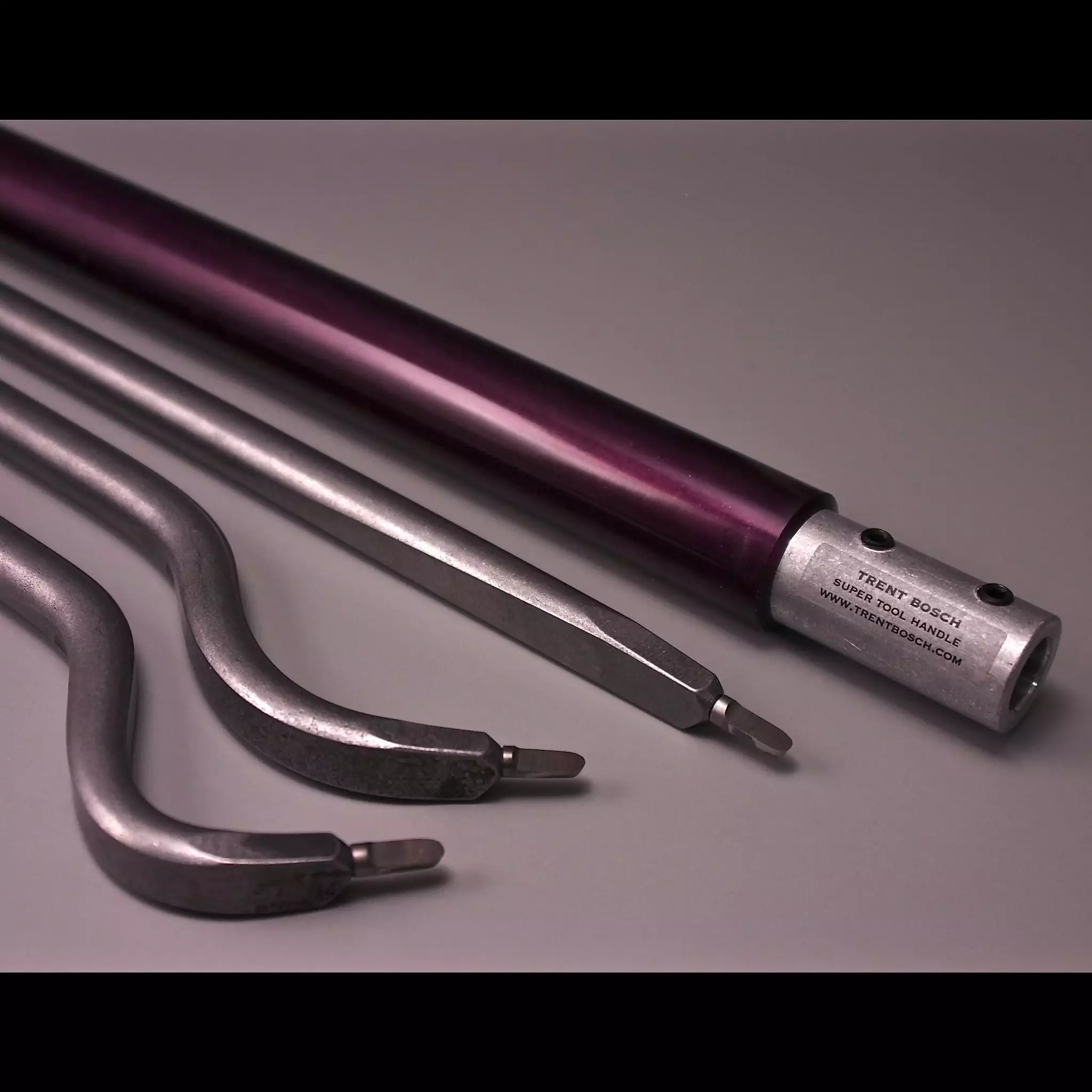 The Trent Bosch Total Access Hollowing Tools are simply the best hollowing tools available. Let us tell you why: Designed by a woodturner for woodturners, not by a manufacturer who has never used a lathe before. Narrow profile of the tool near the tip provides superior clearance and control. You can also hollow longer before needing to clear the shavings out speeding up the process. In other words you have Total Access to the wood your cutting. No swivel tips to get in the way, no set screws to strip out, tips are easily replaced. All bent tools are not created equally. Our bent hollowing tools are designed so that the cutter is located on center with the shaft of the tool. This eliminates the rotary torque often associated with the hollowing process as long as you keep the tool rest behind the bent part of the tool. Trent uses these tools to teach the hollowing process to hundreds of students each year. Each tool is hand made in our facility in Fort Collins Colorado USA • Includes the 5/8″ Straight, Bent and Extreme Bent Hollowing tools with one 20″ Purple Super Tool Handle • Instructions for use