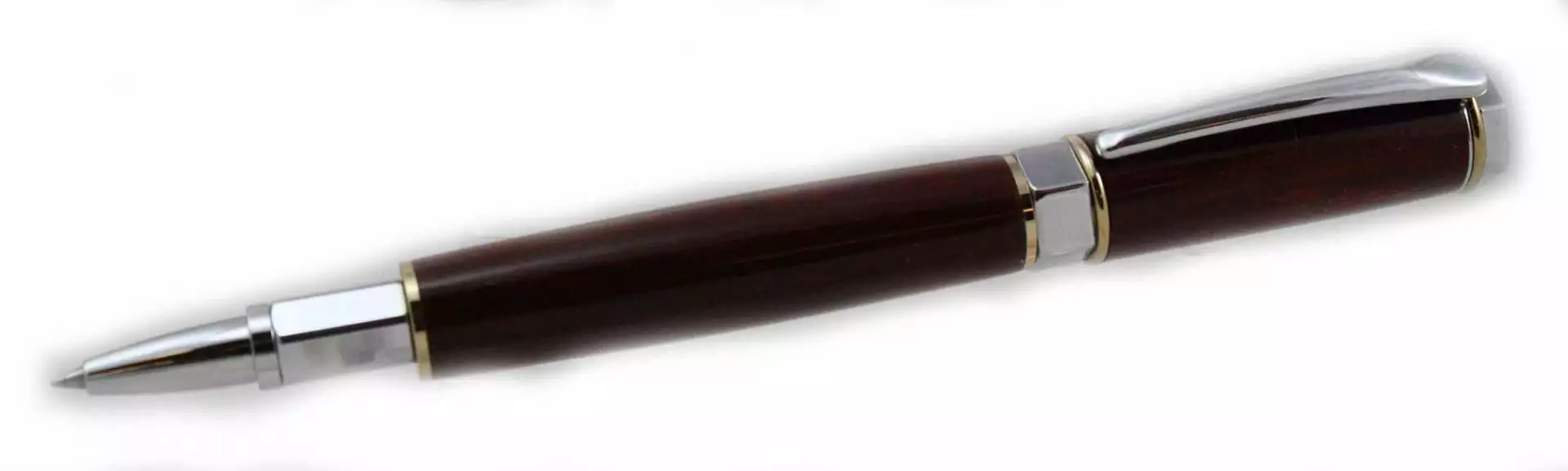 The Vertex pen is now available in this two-barrel Chrome and 24kt rollerball pen. This Vertex style pen. features a magnetic cap that posts instantly and easily on the nib and pen end.