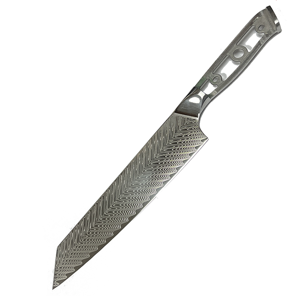 Kiritsuke knives have one of the few multipurpose traditional Japanese blades, and can be used as a yanagi (fish slicer) or an usuba (vegetable knife). These sword shaped knives feature a straighter edge than a yanagi for vegetables, and a longer blade than an usuba for slicing fish with ease. The user must be highly skilled with traditional Japanese knives in order to utilize this unique kiritsuke style design and single edged blade properly. Traditionally, these knives are used only by the executive chefs as a symbol of status and due to its difficulty in use.