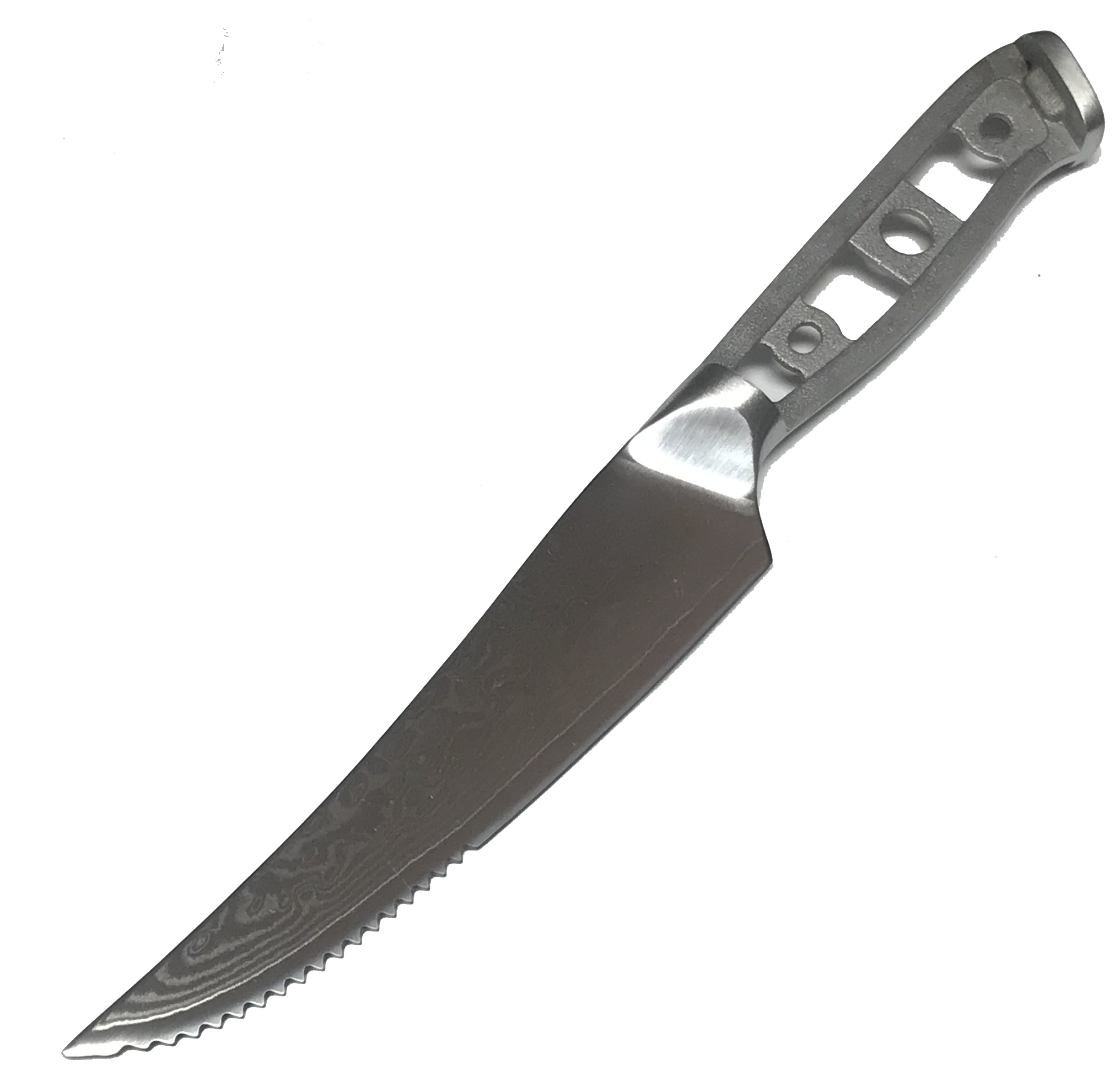 Made from folded VG10 this Damascus knife is elegant and unusual. The steel is folded to show a delicate pattern on the blade. The knife is polished to a mirror finish that accentuates multiple folds. It’s integrated bolsters provide a smooth, sturdy flow to the handle area. Blank comes in an attractive gift box.ÂÂ