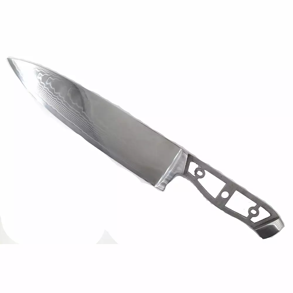 Made from folded VG10 this Damascus knife is elegant and unusual. The steel is folded to show a delicate feather on the blade. The knife is polished to a mirror finish not only bringing out the folds but accentuating the hammered area. It’s integrated bolsters provide a smooth, sturdy flow to the handle area. This Damascus knife is painstakingly crafted over 50 days using the highest quality Damascus steel core, it is both a razor-sharp kitchen powerhouse and artistic statement in premium design and workmanship. Adopt the latest breakthrough technologies, this Damascus knife is simply unrivaled in performance, beauty and value!